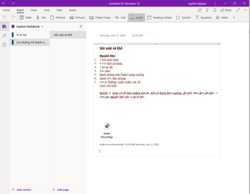 Nếu có niềm yêu thích với ẩm thực và nấu ăn, muốn lưu lại các bí quyết hay công thức, OneNote có thể giúp đỡ được bạn.