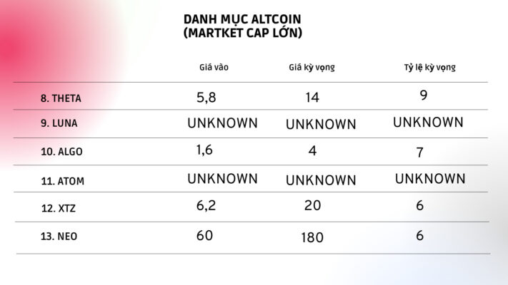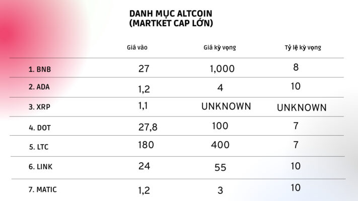 Phần từng coin như thế nào, các bạn có thể google và đọc thông tin bằng tiếng Việt rõ ràng từng coin, mình không viết lại. Về mức giá và kỳ vọng, mọi người tham khảo trong video để nắm rõ hơn nhé.
