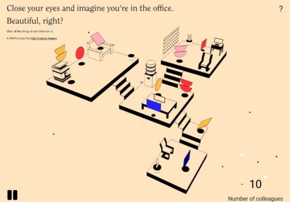 I Miss The Office là một trang web mô phỏng âm thanh của một văn phòng làm việc phổ thông: tiếng điều hòa, tiếng click chuột, gõ bàn phím, tiếng máy photo chạy, tiếng rót nước, tiếng đồng nghiệp xì xào,… Những âm thanh này gợi liên tưởng đến văn phòng làm việc ở công ty bạn, hy vọng sẽ khiến bạn lên cao tình thần làm việc, tăng cường sự tập trung. Ở góc dưới bên phải, bạn có thể thêm hoặc bớt các “đồng nghiệp” của mình để điều chỉnh tiếng ồn, bạn có tối đa là 10 “đồng nghiệp” lận đấy. Website khá sáng tạo và cảm giác có văn phòng ảo kiểu này rất vui.