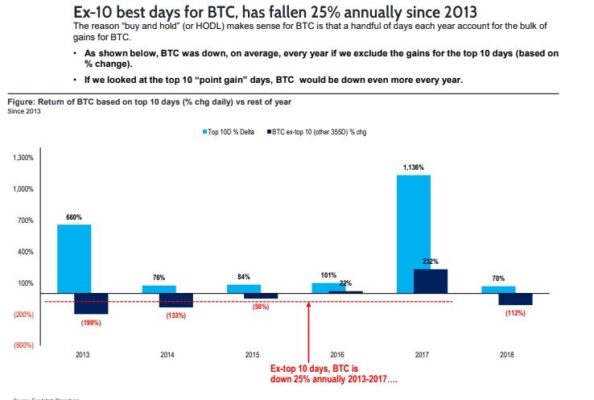 Năm 2018 ông có chia sẻ một research về tỷ lệ sinh lợi khi đầu tư vào BTC trong 10 ngày so với 355 ngày còn lại. Có một sự khác biệt khá lớn giữa việc bạn vào thị trường đúng ngày và những ngày còn lại.